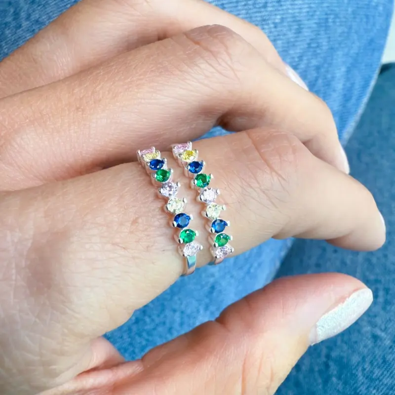 Anel Meia Aliança Colorido – Vibrante e Sofisticado