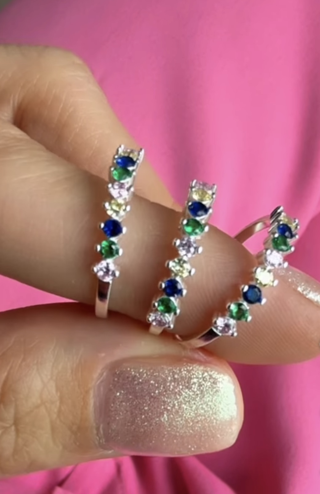 Com design clássico repaginado, este anel meia aliança traz uma sequência de pedras coloridas cuidadosamente cravadas, que se estendem por metade do aro. As cores vibrantes conferem personalidade e alegria à peça, enquanto o acabamento polido e a cravação precisa garantem um visual elegante e bem-acabado. Perfeito para quem busca um toque moderno e expressivo, sem abrir mão da delicadeza e sofisticação.
