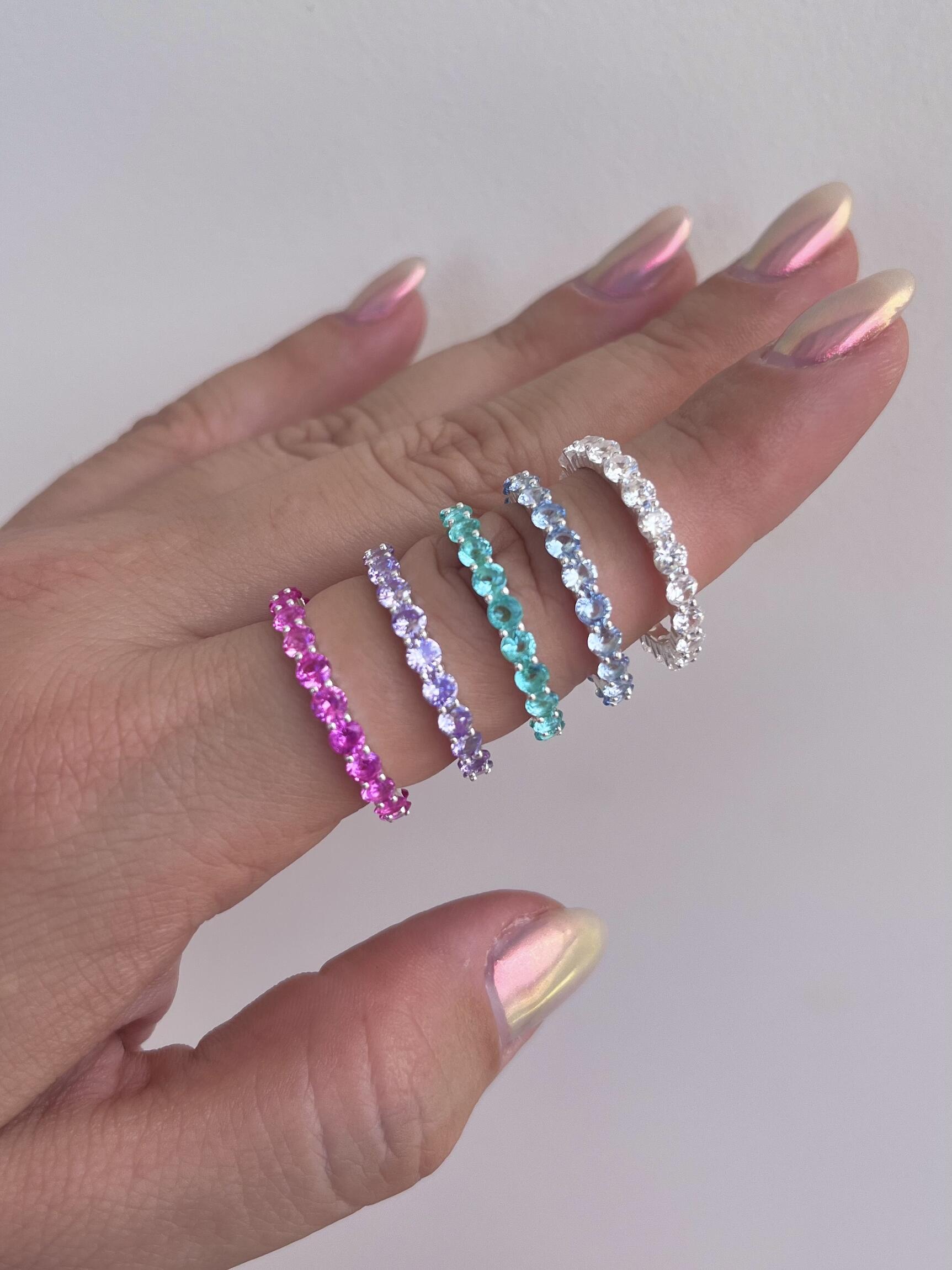 Delicado aparador em prata 925, cravejado com zircônias pink de brilho intenso. Uma peça versátil e moderna, ideal para combinar com outros anéis ou destacar-se sozinha com estilo e sofisticação.