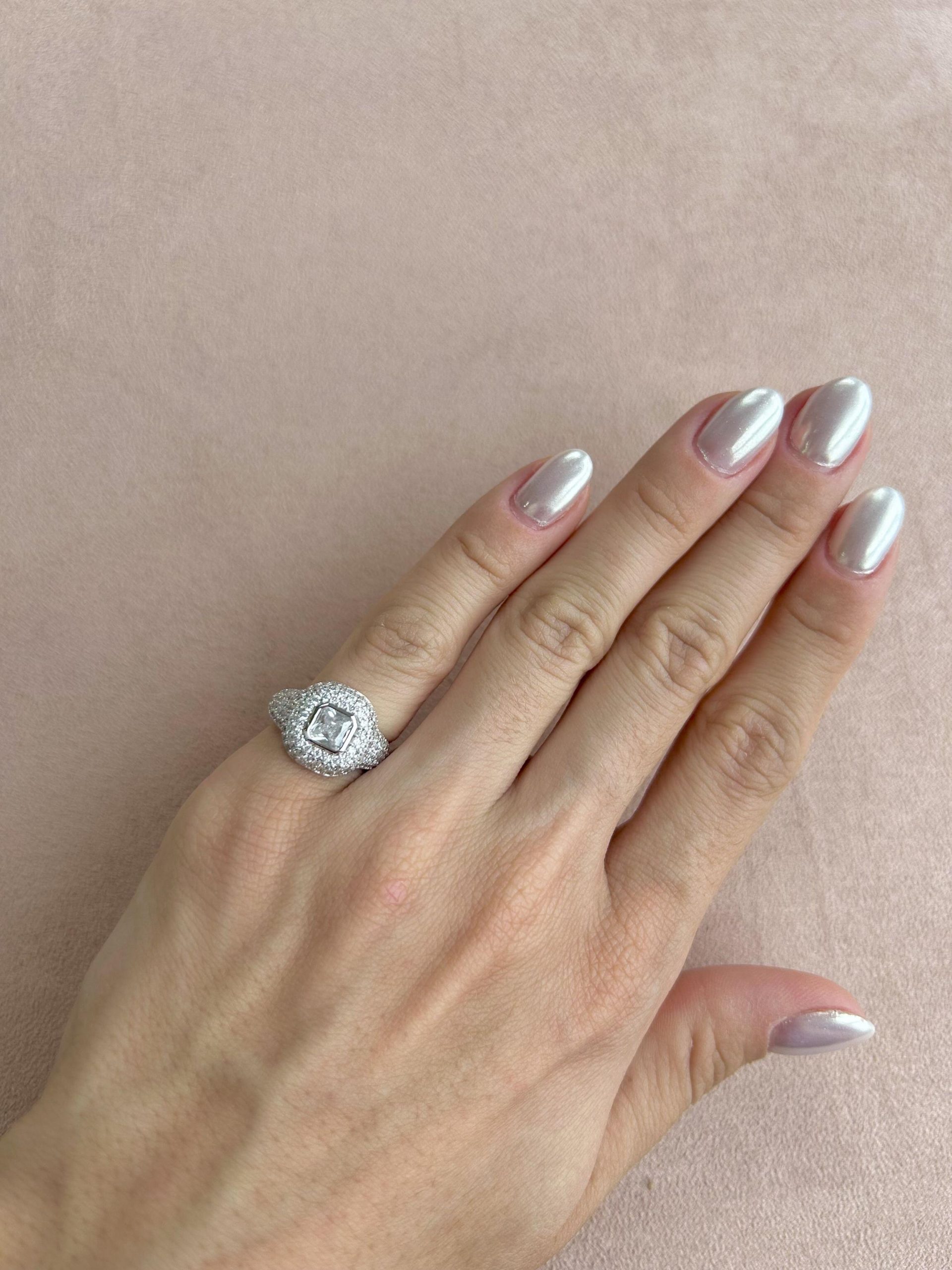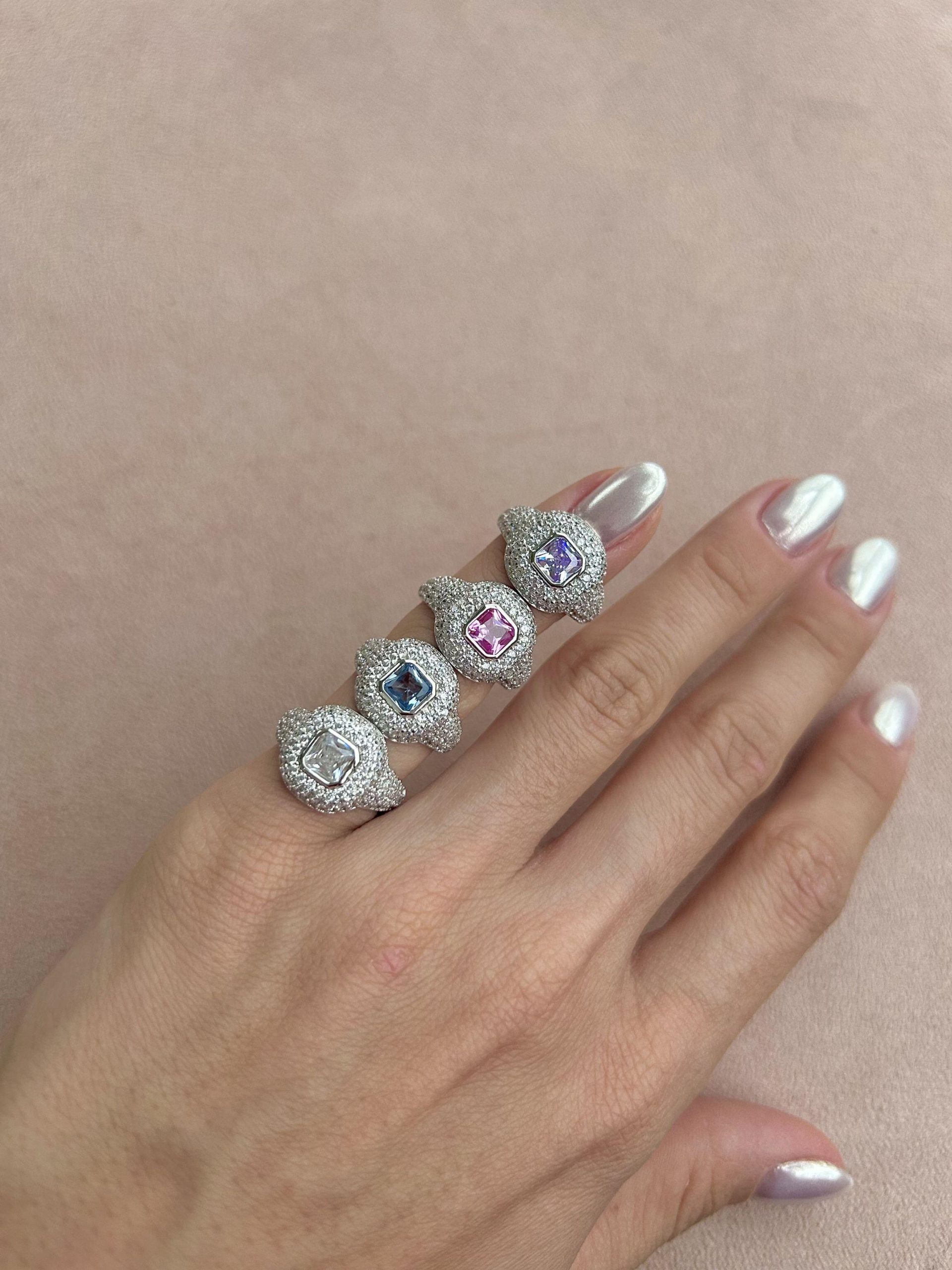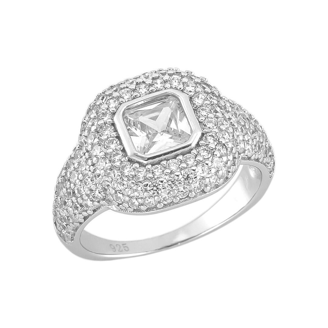 Anel de dedinho com design geométrico e formato quadrado, inteiramente cravejado com microzircônias brancas de alto brilho. Estrutura em metal de alta qualidade Prata 925 com banho de ródio branco, acabamento polido e aro anatômico para encaixe confortável. Uma peça sofisticada com toque moderno, ideal para compor produções minimalistas ou glamorosas.