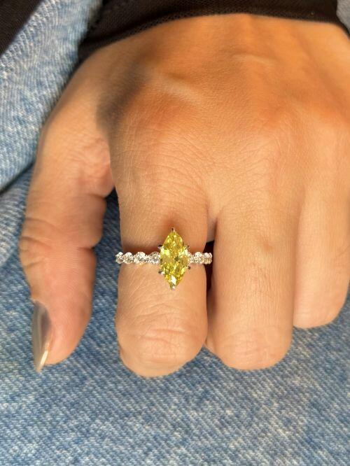 Anel Navete Prata com Zircônia Amarela – Coleção Aurora Dourada
