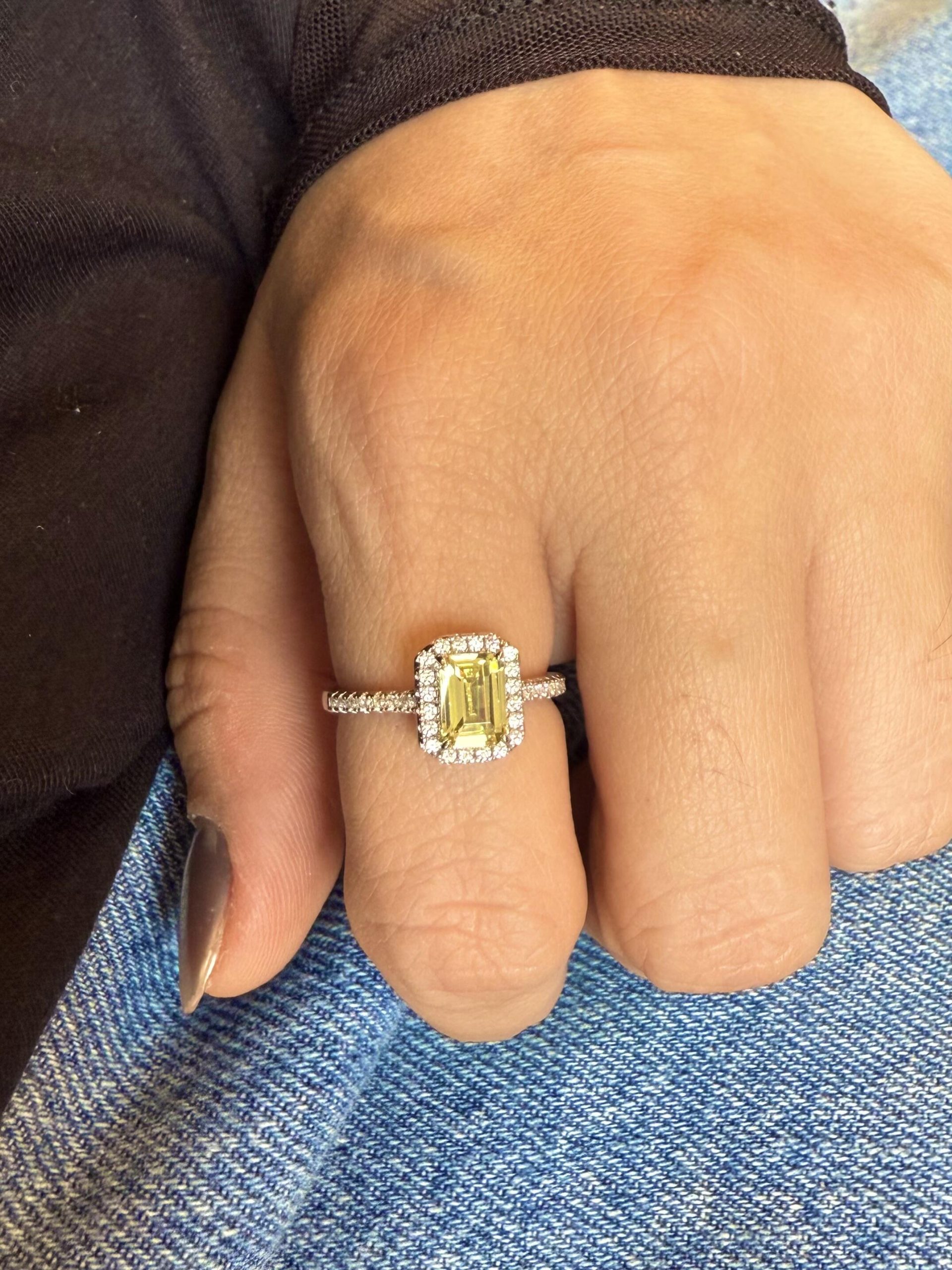 Anel em prata 925 com pedra central em corte retangular, envolvida por zircônias cravejadas que intensificam seu brilho. O design limpo e sofisticado transmite elegância única, tornando esta peça a definição perfeita de requinte.