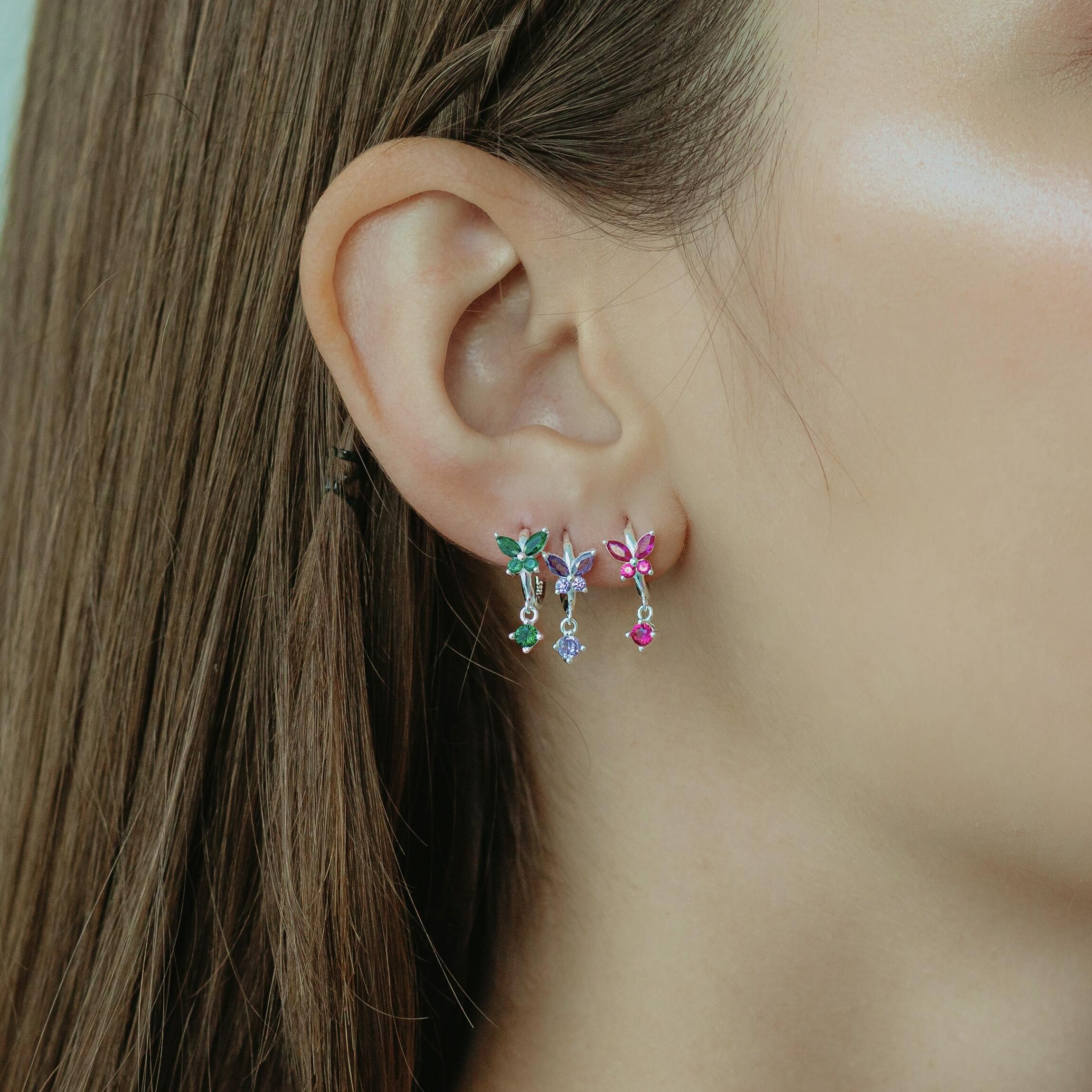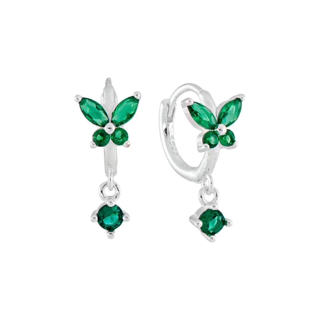 Com design delicado e encantador, esta argolinha apresenta uma borboleta cravejada com pedras verdes no tom esmeralda, que refletem brilho e elegância. Uma peça leve, versátil e cheia de personalidade — ideal para trazer um toque de cor e frescor ao seu visual.
