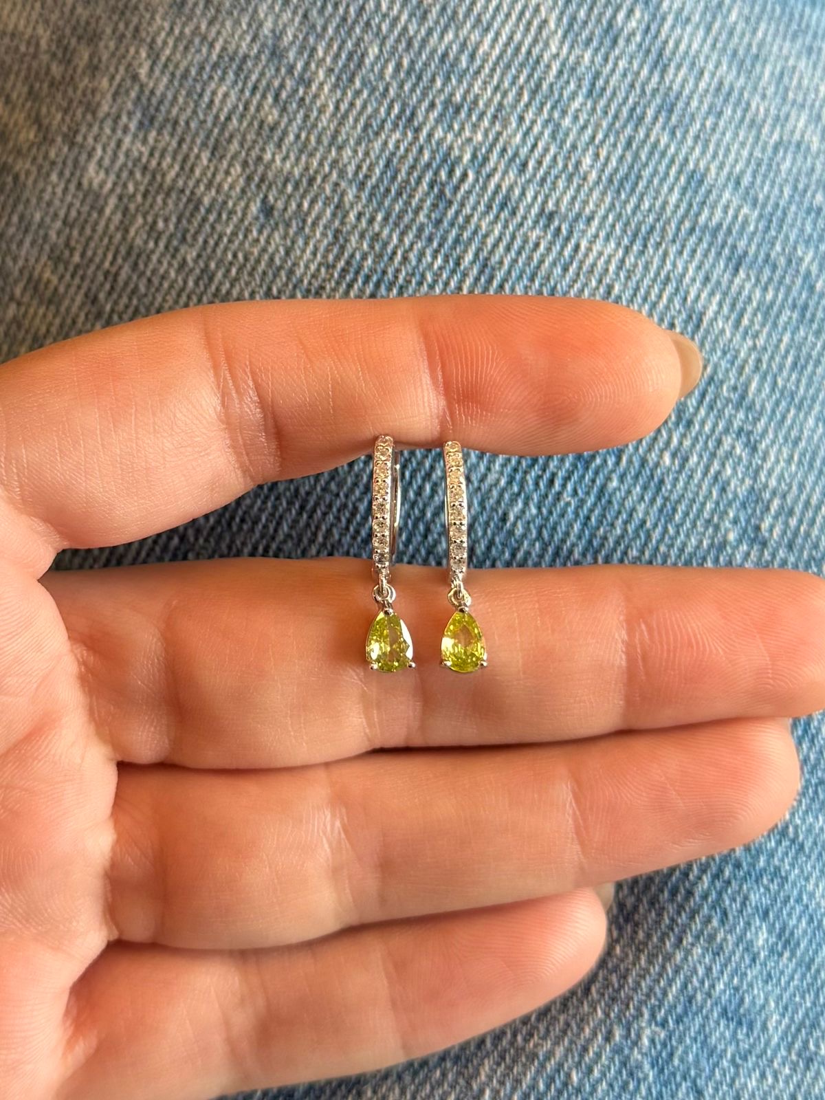 Argolinha cravejada com pingente em formato de gotinha, com brilho surreal e moderna, adicionando delicadeza e estilo ao visual.