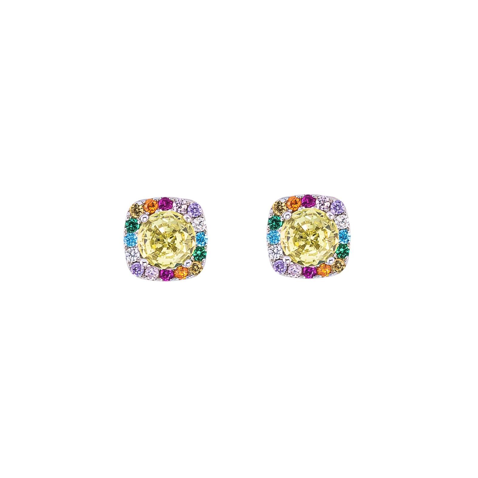 Um delicado brinco em formato quadrado, com centro yellow intenso que lembra um ponto de luz moderno e feminino. As laterais coloridas trazem um toque vibrante e sofisticado, criando um contraste encantador que ilumina o rosto. Perfeito para quem ama acessórios pequenos, estilosos e cheios de personalidade — ideal para usar sozinho ou compor mixes delicados