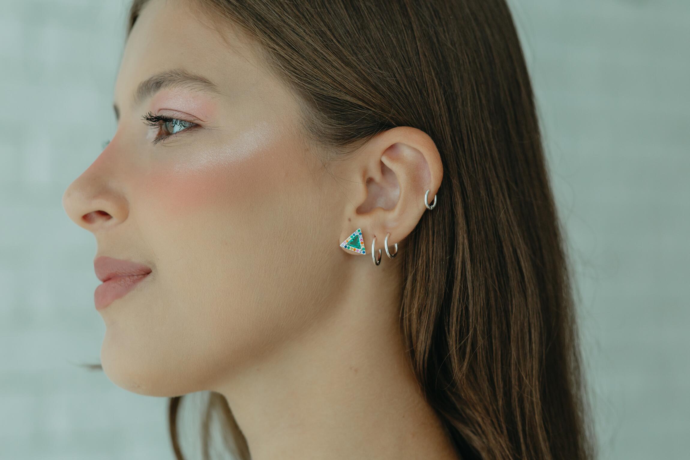 Brinco Triângulo Turmalina – Cor e Sofisticação em Harmonia